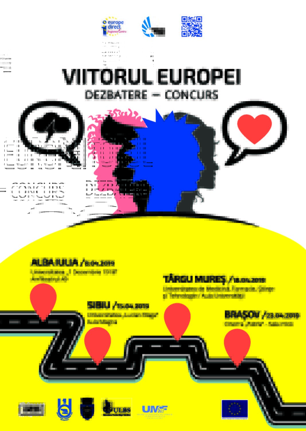 O suită de patru dezbateri ce au loc în patru județe din Regiunea Centru va aduce în prim plan felul în care văd tinerii și nu numai, viitorul Europei și al României în Uniunea Europeană. La Alba Iulia, Sibiu, Târgu Mureș și Brașov, Centrul Europe Direct Regiunea Centru, din cadrul Agenției pentru Dezvoltare Regională Centru, invită cetățenii să participe la aceste discuții alături de tineri în dezbaterea pe temele referitoare la viitorul Europei.