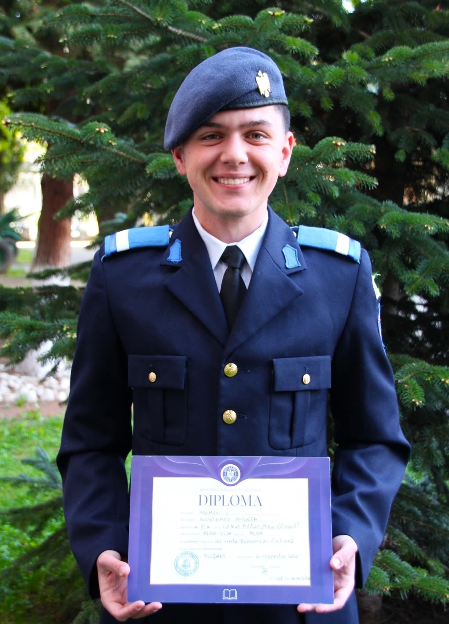 Elevul sergent Andrea Buontempo (clasa a XI-a) a reușit o performanță deosebită la etapa națională a Olimpiadei de Limbi Romanice – Limba Italiană, obținerea Premiului I.