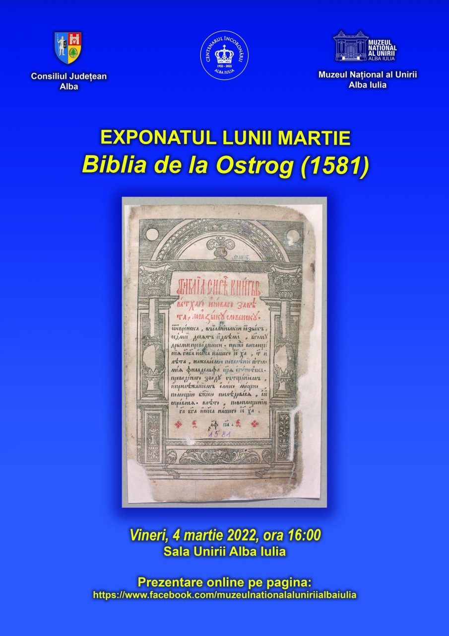 Cu această ocazie va fi expusă Biblia de la Ostrog, prima biblie tipărită în spațiul ucrainean. De remarcat că în centrul cultural de la Ostrog (Ucraina), biblia a fost tradusă în limba slavonă veche și tipărită în 1500 de exemplare
