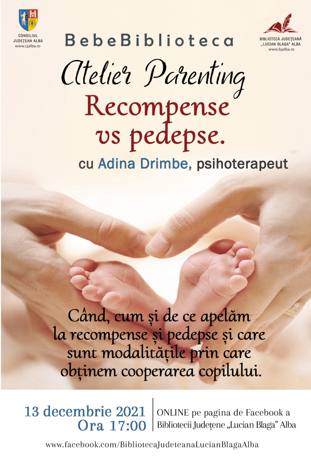 Luni, 13 decembrie 2021, începând cu ora 17:00, pe pagina de Facebook a Bibliotecii Județene „Lucian Blaga” Alba se va desfășura ultimul atelierul de parenting din cadrul proiectului 3.1 BebeBiblioteca, din acest an
