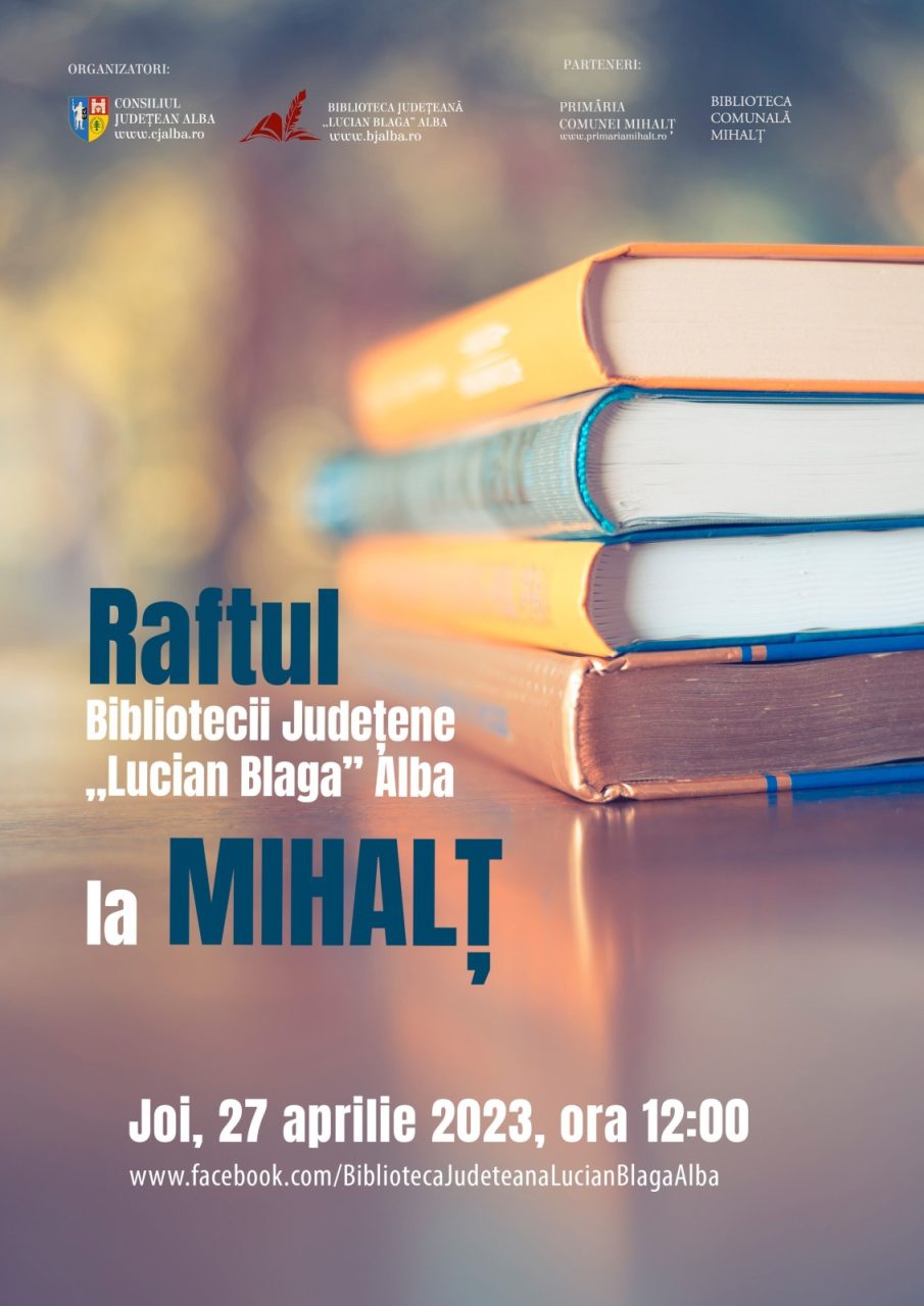 Evenimentul de joi, 27 aprilie 2023, este organizat de Consiliul Județean Alba și Biblioteca Județeană „Lucian Blaga” Alba, în parteneriat cu Primăria Comunei Mihalț și Biblioteca Comunală Mihalț.