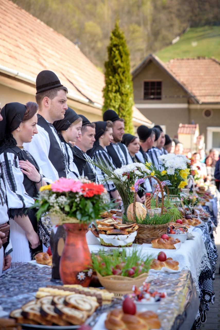 de bine și de mulțumire din sânul familiei. Pentru „Statu la vase în Lunea Paștelui” fiecare tânără familie are rezervată în curtea bisericii o masă pe care o împodobește cât mai frumos cu putință, respectând cu sfințenie ritualul sărbătorii.
