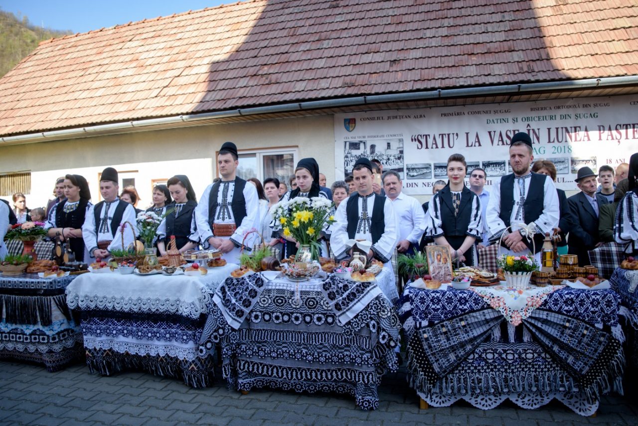Centrul de Cultură „Augustin Bena” Alba oferă tuturor celor care iubesc și apreciază obiceiurile tradiționale românești o colecție de fotografii etnografice, atât noi, cât și de arhivă, despre „Statu’ la vase în Lunea Paștelui” de la Șugag. Obiceiul este unic în România și, din păcate, anul trecut și anul acesta, nu a mai fost organizat din cauza măsurilor de prevenire și combatere a răspândirii virusului SARS-COV-2.