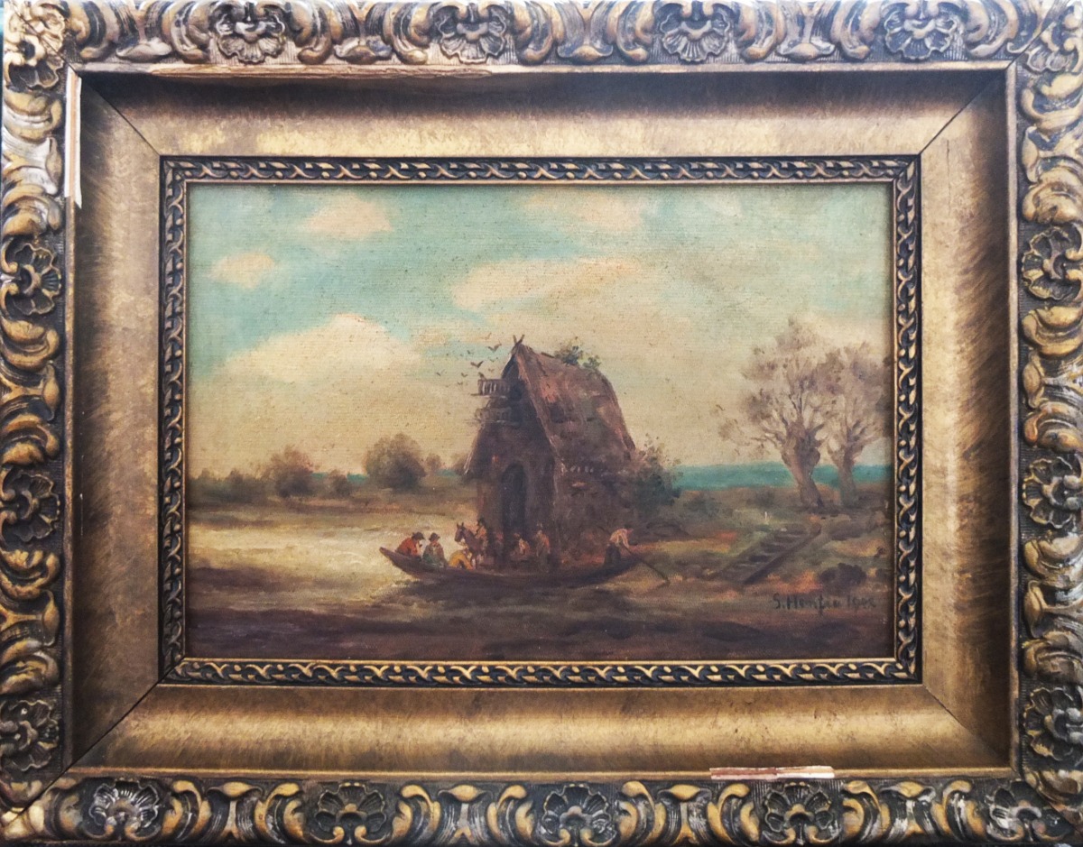Cea de-a doua, Traversarea unui râu cu barca, datează din anul 1902, având următoarele date tehnice: ulei pe pânză, lipită ulterior pe lemn, dimensiuni – 31 x 20,5 cm (pânza), ramă de epocă, din lemn, aurită şi argintată. Este semnat în dreapta, jos, cu albastru închis „S. Henţia 1902”.