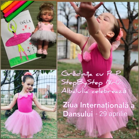 Managerul Grădiniței cu P. P. Step by Step nr. 12, prof. Suciu Veronica, împreună cu întreg colectivul instituției, le-a transmis copiilor, prin intermediul paginii de facebook https://www.facebook.com/gradinita12alba îndemnul: Vă invităm să petreceţi Ziua Internaţională a Dansului alături de cei dragi din familie, într-o atmosferă plăcută de sărbătoare, care să ne amintească faptul că voia bună, muzica, dansul şi mişcarea sunt necesare pentru a avea un stil de viaţă sănătos! FELICITĂRI TUTUROR PARTICIPANTILOR!”