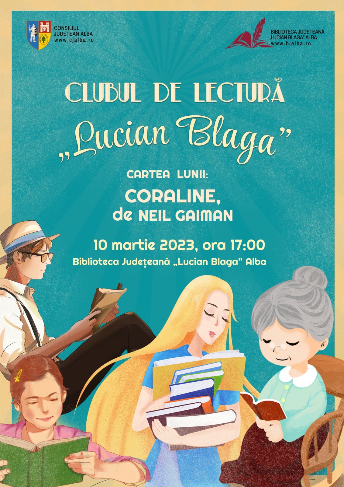 Vineri, 10 martie 2023, la ora 17.00, în organizarea Consiliului Județean Alba și a Bibliotecii Județene „Lucian Blaga” Alba, are loc o nouă întâlnire a Clubului de lectură „Lucian Blaga”.