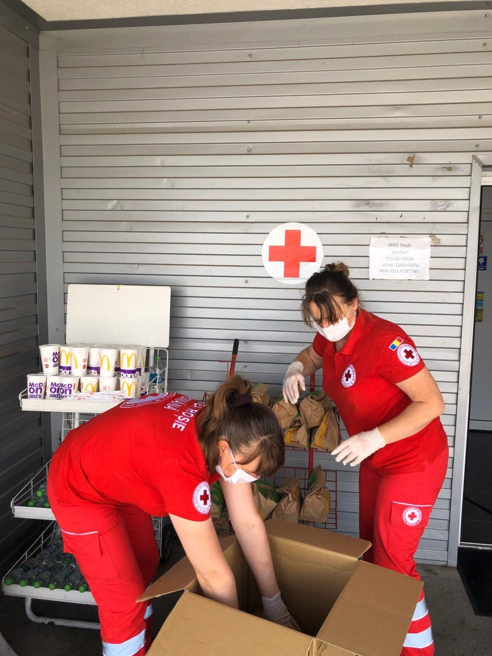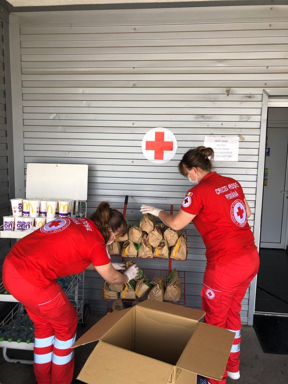 Persoanele care tranzitează județul nostru, urmând sa fie izolate sau carantinate în alte județe, sunt sprijinite de Crucea Roșie cu apă, sucuri, sandvișuri, meniuri Mc Donalds sau cornuri cu ciocolată.