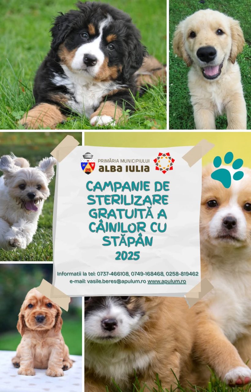 Primăria Alba Iulia desfășoară, în perioada 𝟎𝟏.𝟎𝟔- 𝟑𝟏.𝟏𝟐.𝟐𝟎𝟐𝟓, cea de-a șasea ediție a 𝐂𝐀𝐌𝐏𝐀𝐍𝐈𝐄𝐈 𝐃𝐄 𝐒𝐓𝐄𝐑𝐈𝐋𝐈𝐙𝐀𝐑𝐄 𝐆𝐑𝐀𝐓𝐔𝐈𝐓𝐀 𝐀 𝐂𝐀𝐈𝐍𝐈𝐋𝐎𝐑 𝐂𝐔 𝐒𝐓𝐀𝐏𝐀𝐍 din municipiu.