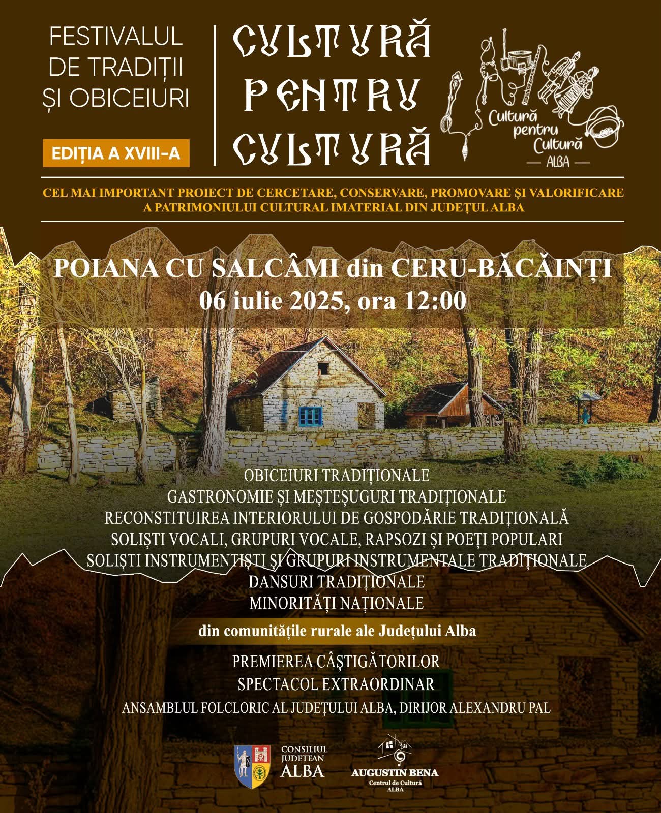 Duminică: Festivalul- Concurs de Tradiții și Obiceiuri „Cultură pentru Cultură”, ajunge la Ceru Băcăinți