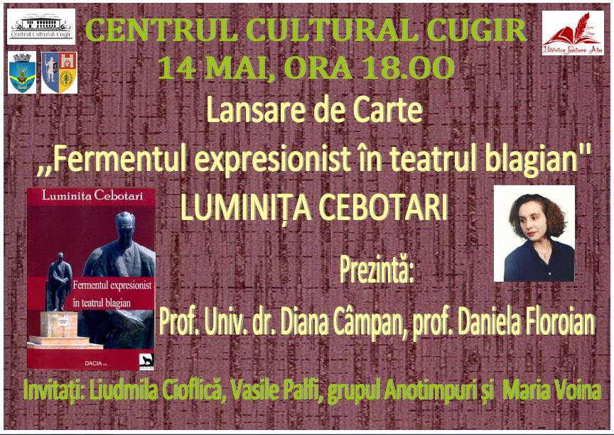 Marți: Eveniment editorial la Cugir- lansarea volumului ,,Fermentul expresionist în teatrul blagian” semnat de prof. Luminița Cebotari