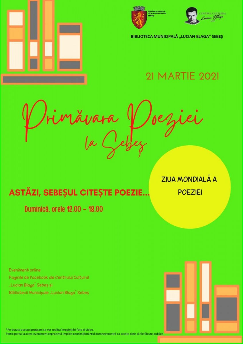 Primăria și Consiliul Local al Municipiului Sebeș, Centrul Cultural „Lucian Blaga” Sebeș, prin Biblioteca Municipală „Lucian Blaga” vă oferă, în mediul online, un colaj liric de momente speciale dedicate Zilei…