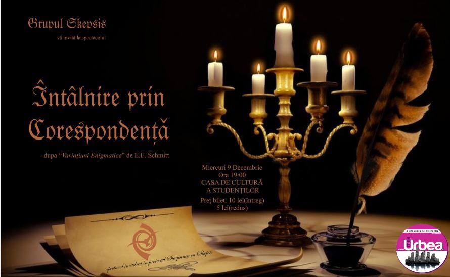 MIERCURI: „Întâlnire prin Corespondenţă”, ultimul spectacol din proiectul Stagiunea cu Skepsis 2015