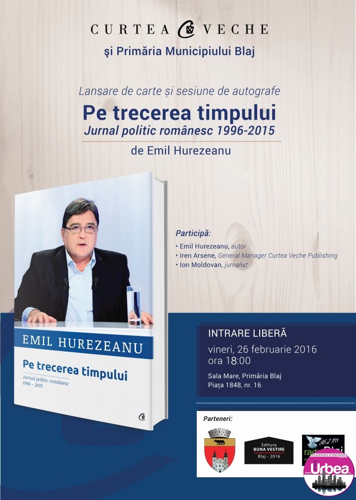 Vineri: Volumul „Pe trecerea timpului. Jurnal politic românesc 1996-2015”, de Emil Hurezeanu va fi lansat la Blaj