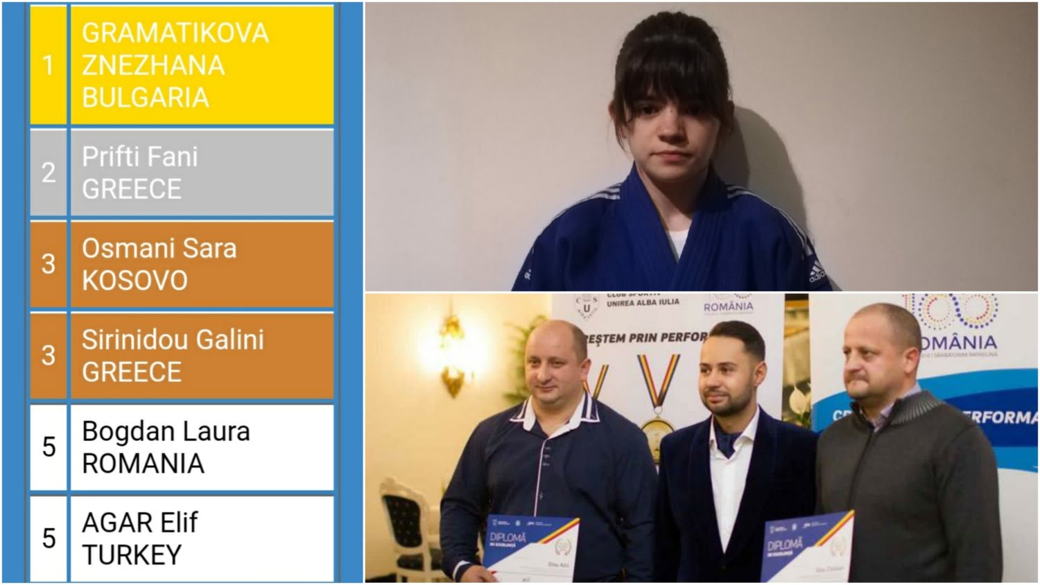 Sportivă legitimată la CS Unirea Alba Iulia, locul 5 la Campionatul Balcanic de Judo – copii U 15