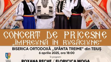 Primăria orașului Teiuș, în colaborare cu Centrul de Cultură „Augustin Bena” și Ansamblul Folcloric „Dor Teiușan”, organizează duminică, 6 aprilie 2025, de la ora 18:00, un concert special de pricesne.…