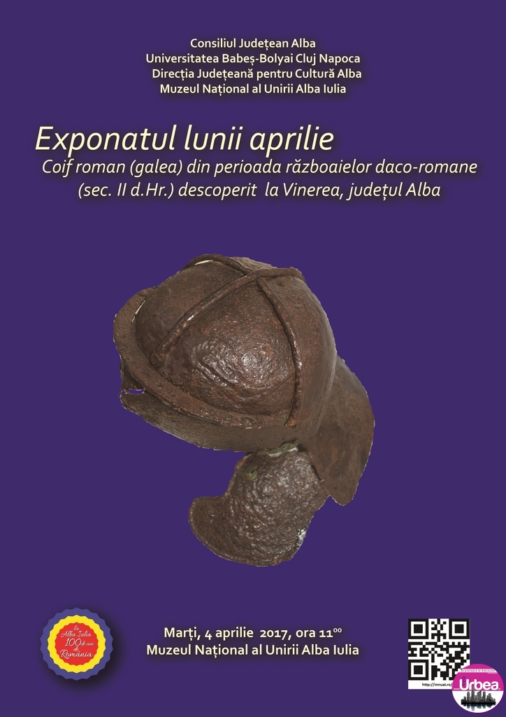 La Muzeul Național al Unirii din Alba Iulia va fi prezentat marți, 4 aprilie, „Exponatul lunii”. Este vorba despre un coif roman (galea) din perioada războaielor daco-romane (sec. II d.Hr.)…