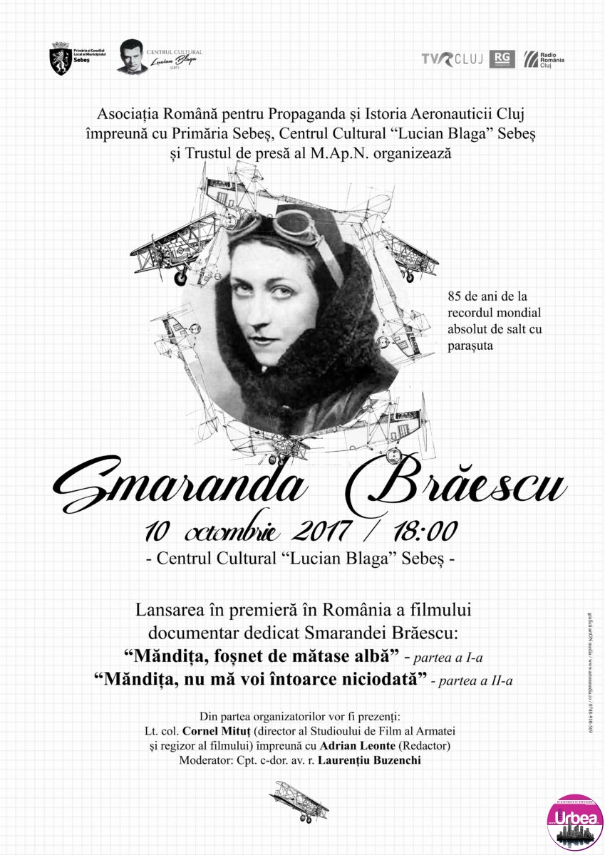 85 de ani de la recordul mondial absolut de salt cu parașuta a Smarandei Brăescu vor fi marcaţi, marţi, la Sebeş, prin proecţia filmului documentar dedicat acesteia. Astfel, începând cu…