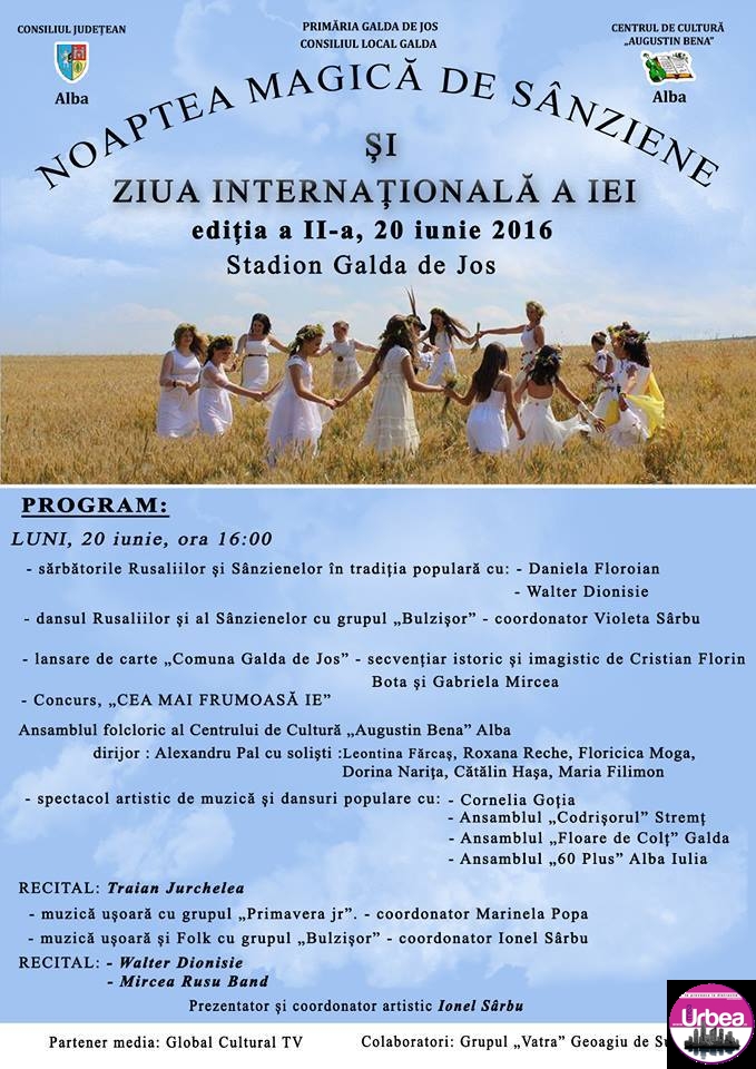 În acest an, Noaptea Magică de Sânziene și Ziua Internațională a Iei, ediția a II-a, va fi sărbătorită, în 20 iunie, a doua zi de Rusalii, pe stadionul din Galda…