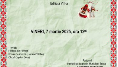 Vineri, 7 martie 2025, începând cu ora 12:00, Primăria Municipiului Sebeş și Centrul Cultural „Lucian Blaga” Sebeş, în parteneriat cu unităţile şcolare locale şi Direcţia de Asistenţă Socială Sebeş, vă…