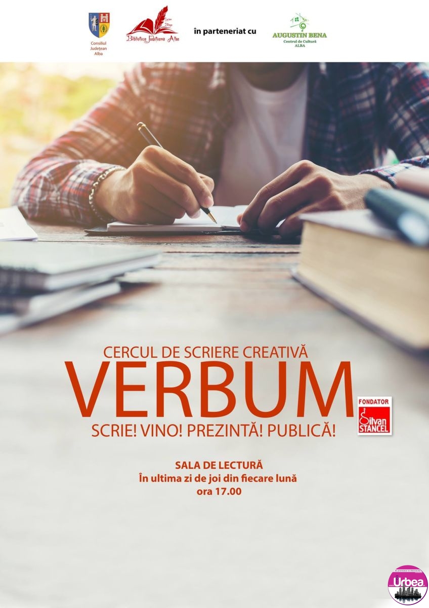 Consiliul Județean Alba și Biblioteca Județeană „Lucian Blaga” Alba invită toate persoanele interesate, la cercul de scriere creativă “Verbum”. Evenimentul va avea loc joi, 27 iulie 2017, la ora 17.00,…