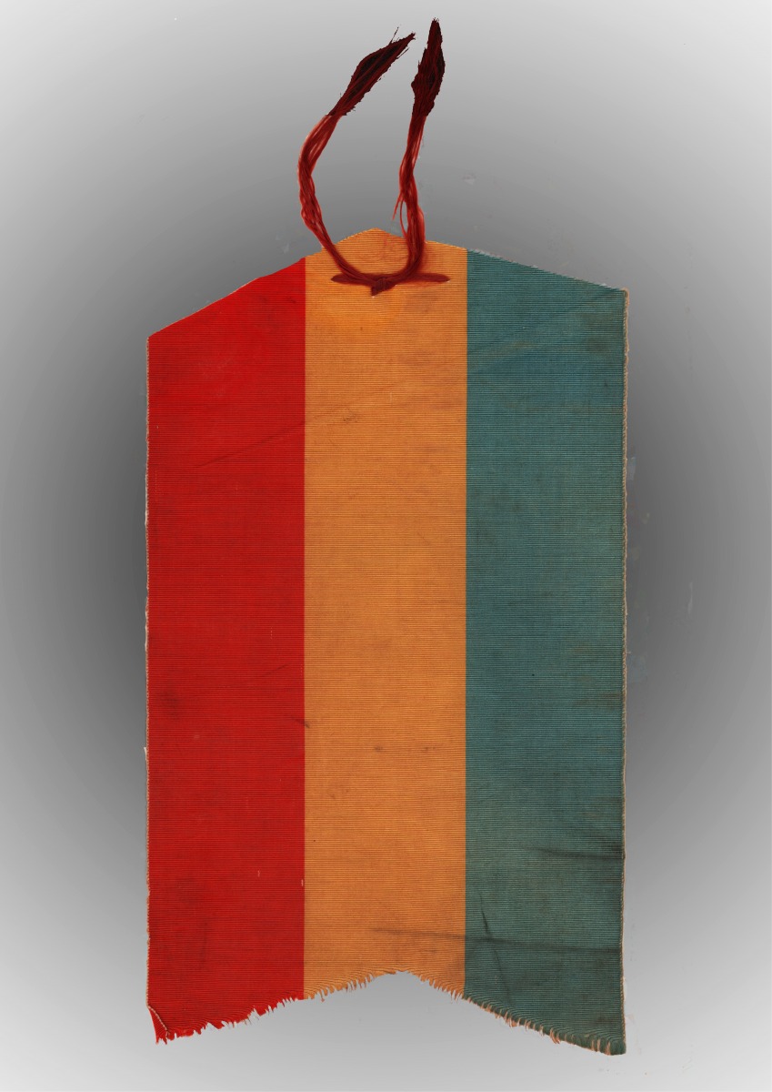 Fragmentul de eşarfă a fost tăiat sub forma unui fanion, are culorile dispuse longitudinal, de la stînga la dreapta – roşu, galben şi albastru şi dimensiunile 25×14,5 cm, fiind fixat cu un şnur de mătase roşie, pe un document semnat de preotul Aurel Gligor, care-i atestă autenticitatea.
