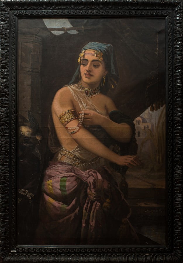 Exponatul lunii iulie, „Odalisca”, pictură realizată de Sava Henția, în anul 1882, ilustrează fascinația pe care artiștii europeni ai epocii au manifestat-o față de cultura și civilizația orientală. Odalisca, sau cadâna, era o femeie care servea într-un harem oriental, în pictura lui Sava Henția aceasta fiind reprezentată parțial nud, având pe cap o basma albastră și purtând un veșmânt de culoare violet deschis, cu falduri ample; pe frunte, în urechi, la gât, pe brațe și pe abdomen poartă bijuterii, formele pline emanând un senzualism reținut; alături este redată o vază cu flori, iar în fundal o draperie, dincolo de care se observă o clădire, parte a unui peisaj urban oriental.