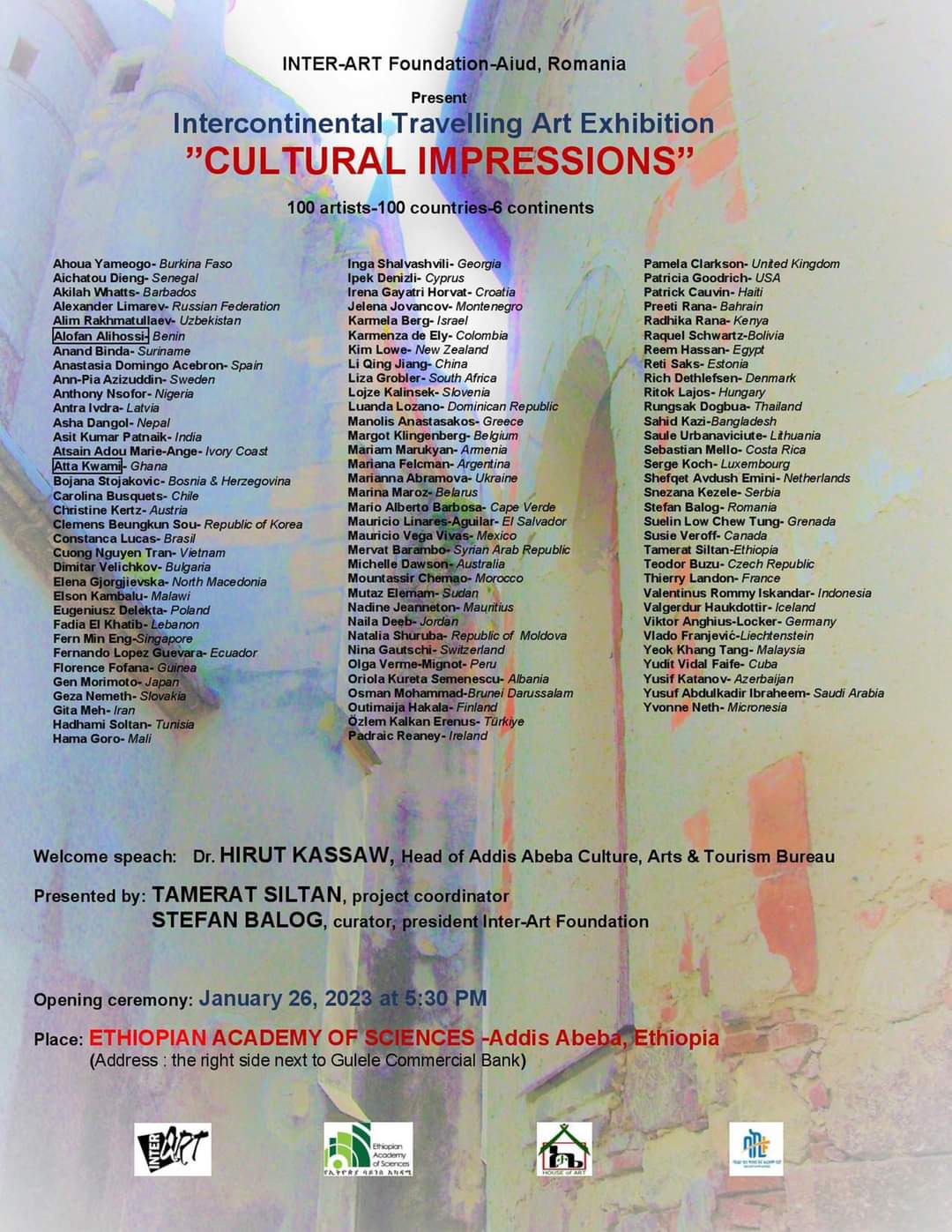 În perioada 24 ianuarie – 5 februarie 2023 Stefan Balog, preşedintele Fundaţiei Inter-Art, reprezintă România la Simpozionul Internaţional de Artă „Origin” ce are loc în Etiopia. Participă artişti din 25 de ţări din toate colţurile lumii.
