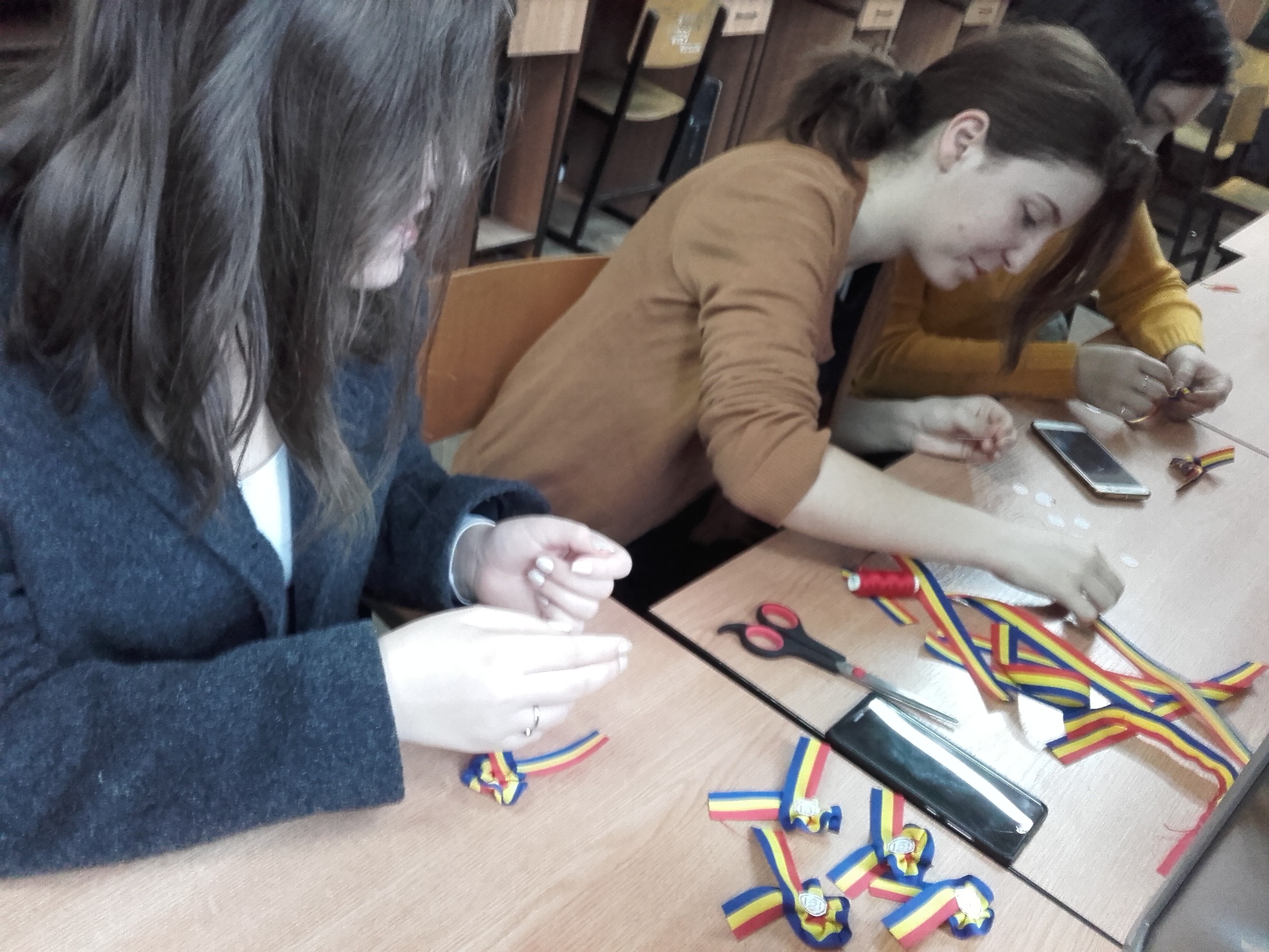 Tricolorul va fi purtat cu mândrie în colegiu pentru că în această perioadă elevii din clasele a IX a A, a XI a A, a XI-a D, a XII a D muncesc și la realizarea a 100 bucăți cocarde Centenar care vor fi oferite părinților, profesorilor și colegilor.