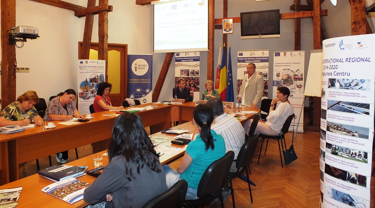 Acestea au fost întrebările la care s-a răspuns pe parcursul a două zile la Sibiu, în cadrul unor ateliere practice de lucru pe proiecte. Dezbaterile organizate de către Centrul Europe Direct Regiunea Centru, din cadrul ADR Centru, au avut loc în 15-16 iunie 2015, au fost susținute de reprezentanții Ministerului Culturii, cu sprijinul Primăriei Municipiului Sibiu, parte a Bursei de Spectacole Sibiu.