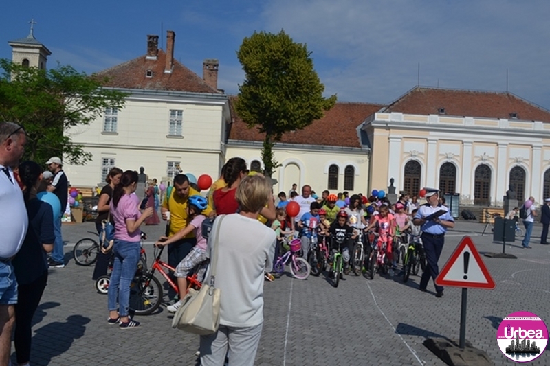 Copiii au participat la concursul de biciclete ”Pedalăm şi învăţăm” , au făcut desene pe asfalt, s-au împrietenit cu poliţiştii şi au primit diplome, cadouri şi dulciuri puse la dispoziţie cu sprijinul Primăriei Municipiului Alba Iulia.