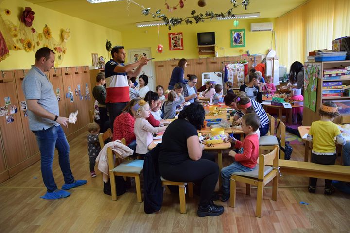 Echipele formate din copilașii de la cele 4 grupe susținuți de părinți, bunici și frați mai mici sau mari, s-au înarmat cu multă răbdare și au confecționat ornamente de toamnă. Materialele folosite au fost din natură. Cei mai mari grădinari au defilat pe covorul rusu etalându-și costumele confecționate din materiale reciclabile.