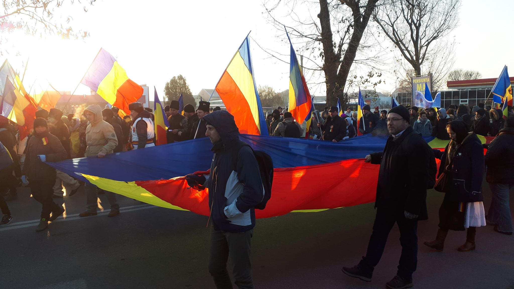 La manifestația stradală a fost intonat imnul României, au fost fluturate steaguri tricolore orizontale, ca la 1918, s-au scandat mesajele „Unitate națională!”, „Basarabia e România!”, „Unire!”, „România n-a avut graniță la Prut!”, „Trăiască și-nflorească Moldova, Ardealul și Țara Românească!” și s-au cântat piese patriotice, ca „Acolo este țara mea” sau „Treceți, batalioane, române, Carpații”.