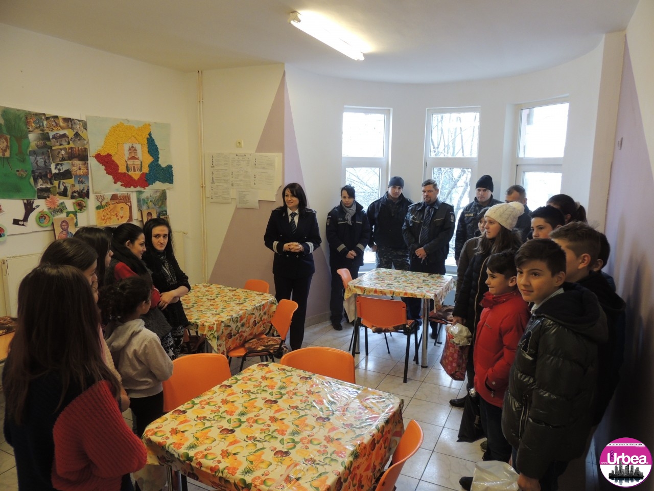 FOTO: Poliţiştii din Alba şi elevi de la Şcoala „Avram Iancu” au dus cadouri de sărbători pentru copiii din trei centre sociale