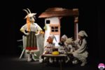 Un personaj aparte, adus pe scenă parcă din amintirile lui Creangă, este un popă, un biet popă de la țară, cu barbă lungă de întinde-o mână și nu poa’ s-o ajungă, cu nas mare luat la purtare și roșu ca vinul ghiurghiuliu pe care, posibil, îl bea în cantități considerabile. Ei, dar  domn părinte vine la biata căpriță pentru a o invita să cânte la o nuntă pisicească, pentru că doamna Capră, poate nu știați, era renumită pentru vocea-i plăcută, drept răsplată oferindu-i merinde pentru iezișori. Cum să refuze! Dar cu cine să-și lase copiii, se frământa capra. Întreg dialogul dintre capră și popă este plin de umor, personajele fiind atât de bine evidențiate, fiecare în raport cu celelalte, încât se ajunge la creionarea de tipologii umane: fariseul, mama bună și grijulie și copiii, năzdrăvani, cum le șade bine copiilor plini de viață (dar veți vedea că năzdrăvănia, de nu are limite…).
