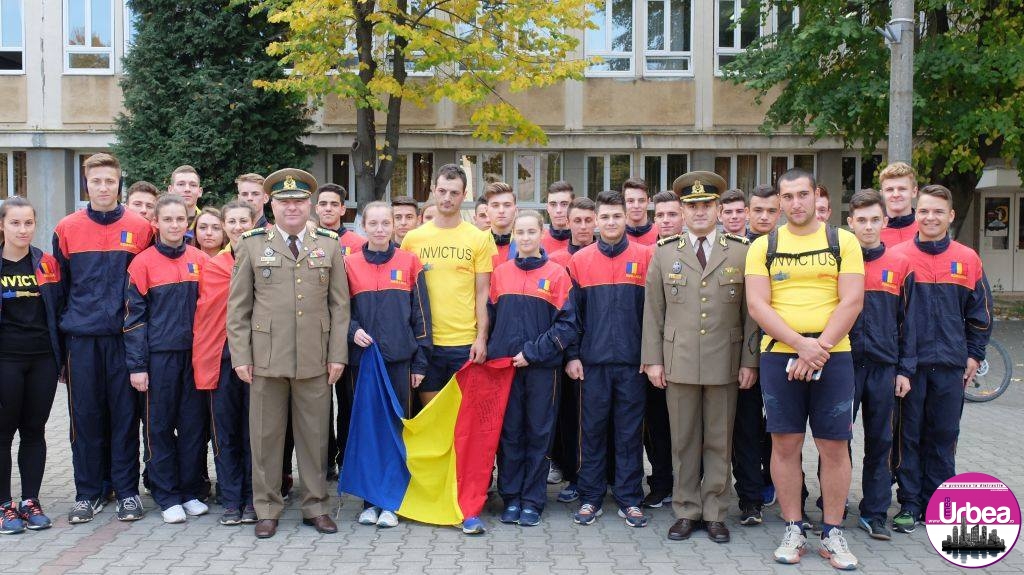 Voluntarii Invictus care au alergat pe traseul Sebeş-Alba Iulia au fost primiţi, joi, pe platoul din incinta Colegiului Naţional Militar ,,Mihai Viteazul”, de către comandantul colegiului, colonel Marcel Domşa, alături de toţi elevii militari.