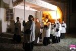 La finalul slujbei oamenii, conduși de preoți, au ieșit afară unde au înconjurat, cu lumânările în mână curtea Palatului Episcopal.
