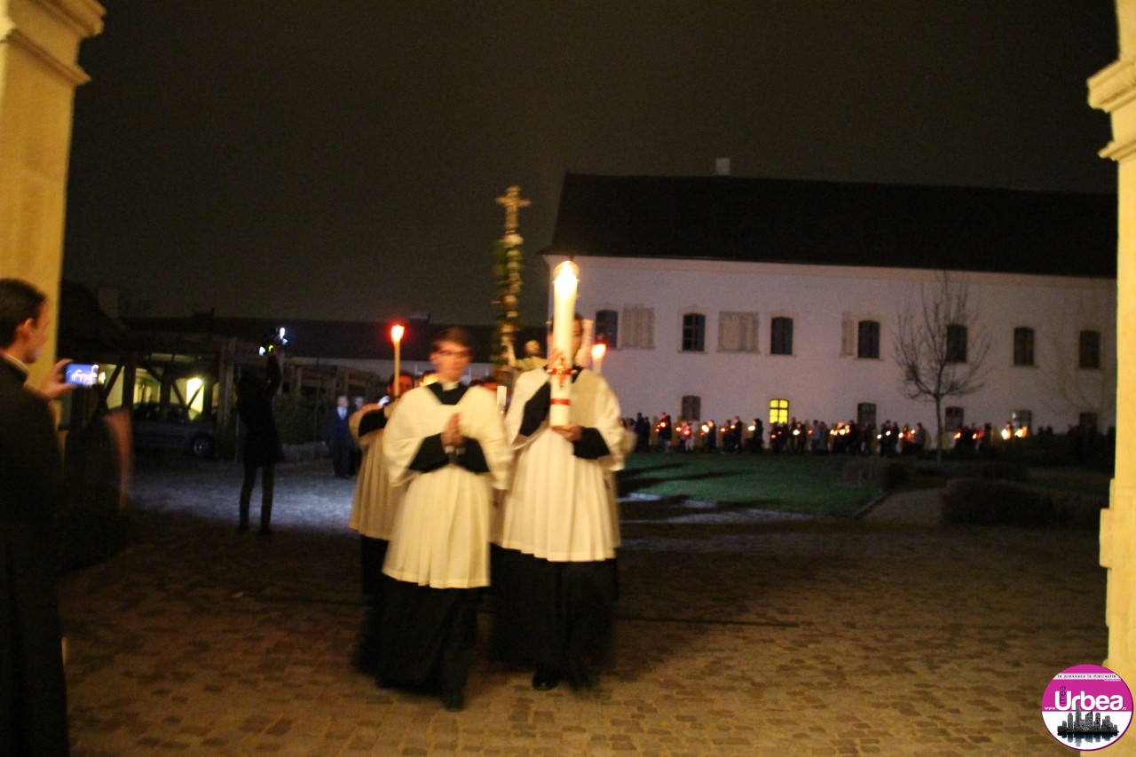 Vigilia Pascală a început la ora 21.00, fiind prezidată de ÎPS Arhiepiscop György Jakubinyi și a durat aproximativ două ore și jumătate. Ritualul a începe în faţa bisericii catedrale, prin binecuvântarea focului şi aprinderea Lumânării Pascale, de la care au fost aprinse lumânările credincioşilor, iar apoi credincioşii au ascultat vestirea solemnă a Învierii.