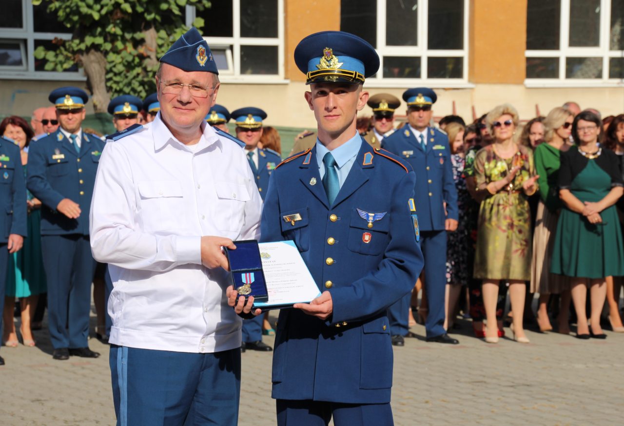 În cadrul ceremonialului de astăzi a fost oferită distincţia „Robert Schuman” clasei cu cele mai bune rezultate la învăţătură în anul şcolar trecut. Beneficiara acestui premiu este clasa a XI–a D, care a obţinut, în anul şcolar 2018 – 2019, media 8,79 profesor diriginte Petru Stănilă şi lt. Adrian Goga, comandantul companiei. De asemenea, şefului promoţiei 2019, absolventul Nicolae – Alexandru Bodea, i-a fost conferită din partea Statului Major al Forţelor Aeriene, emblema de onoare a Forţelor Aeriene.