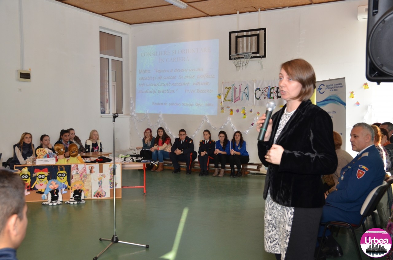 Consilierul psiho-pedagog al școlii, Ildiko Szilagyi, a realizat o prezentare privind importanța orientării elevilor în carieră, pașii care trebuie urmați, factorii decizionali în alegerea unei profesii.