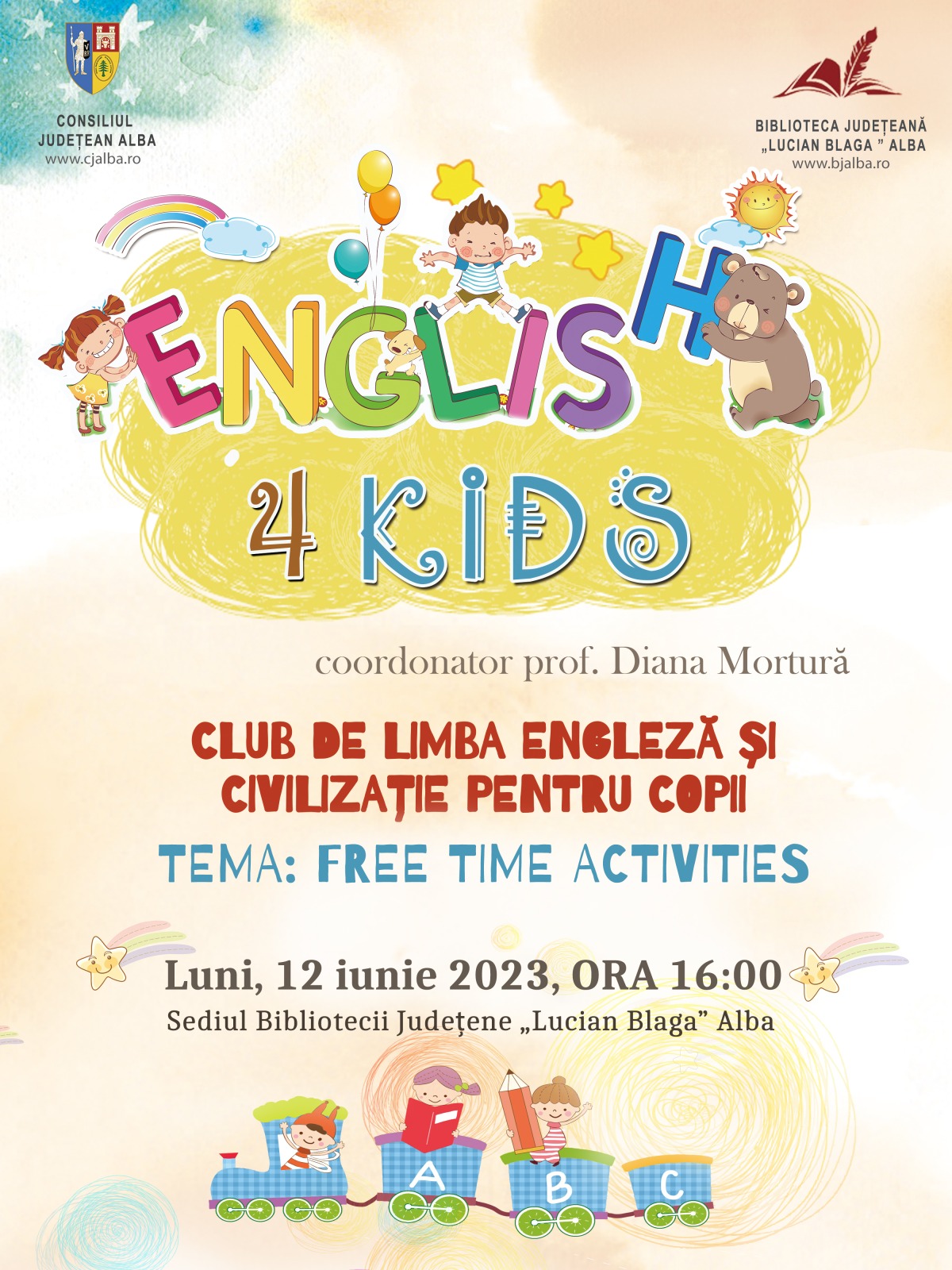 Free time activities, luni, la Biblioteca Județeană „Lucian Blaga” Alba, la Clubul de engleză „English 4 Kids”