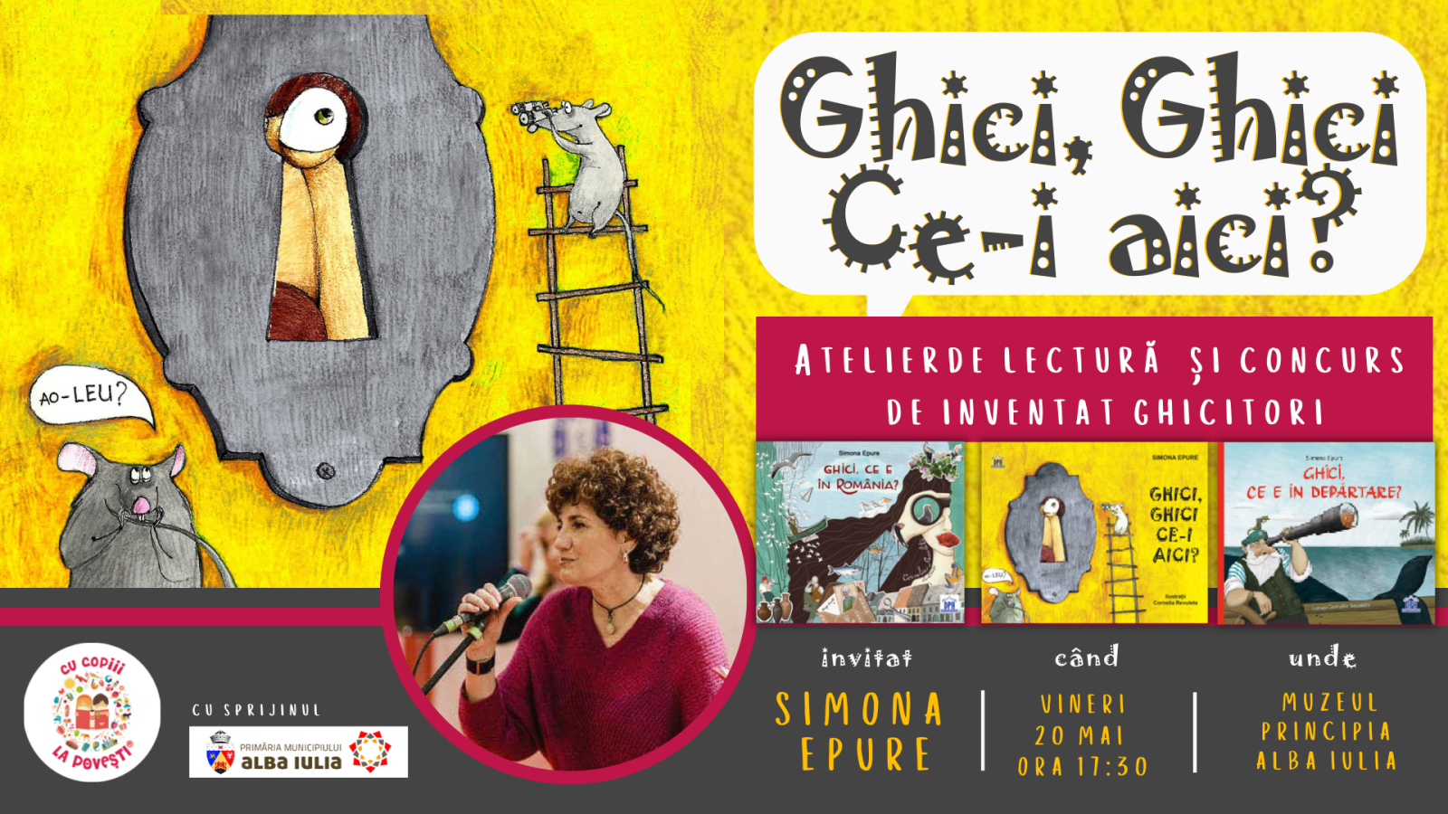 Pe 20 mai de la ora 17:30, Muzeul Principia din Alba Iulia va fi gazda unui atelier de lectură în rime și concurs de inventat ghicitori. Invitata specială a Clubului de carte Cu copiii la povești, încântătoarea Simona Epure, autoarea celor mai îndrăgite cărți pentru copii în versuri, vine la Alba Iulia pentru o călătorie în lumea distractivă și educativă a ghicitorilor!