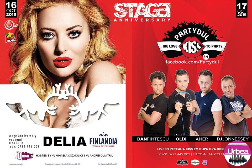 Acest sfârşit de săptămână este unul de sărbătoare pentru Club Stage din Alba Iulia. Cel mai mare club din oraş împlineşte 5 ani. Organizatorii au invitaţi speciali pentru a marca cei cinci ani de funcţionare, iar primul invitat special care va da startul distracţiei din acest week-end este Delia. Pentru că un astfel de eveniment trebuie văzut de o întreagă ţară, o echipă de la U Tv va filma întreaga petrecere. Dar distracţia nu se opreşte aici şi sâmbătă seara, cei de la Partydul Kiss FM vin din nou la Alba Iulia cu cele mai tari hit-uri ale muzicii româneşti şi nu numai.