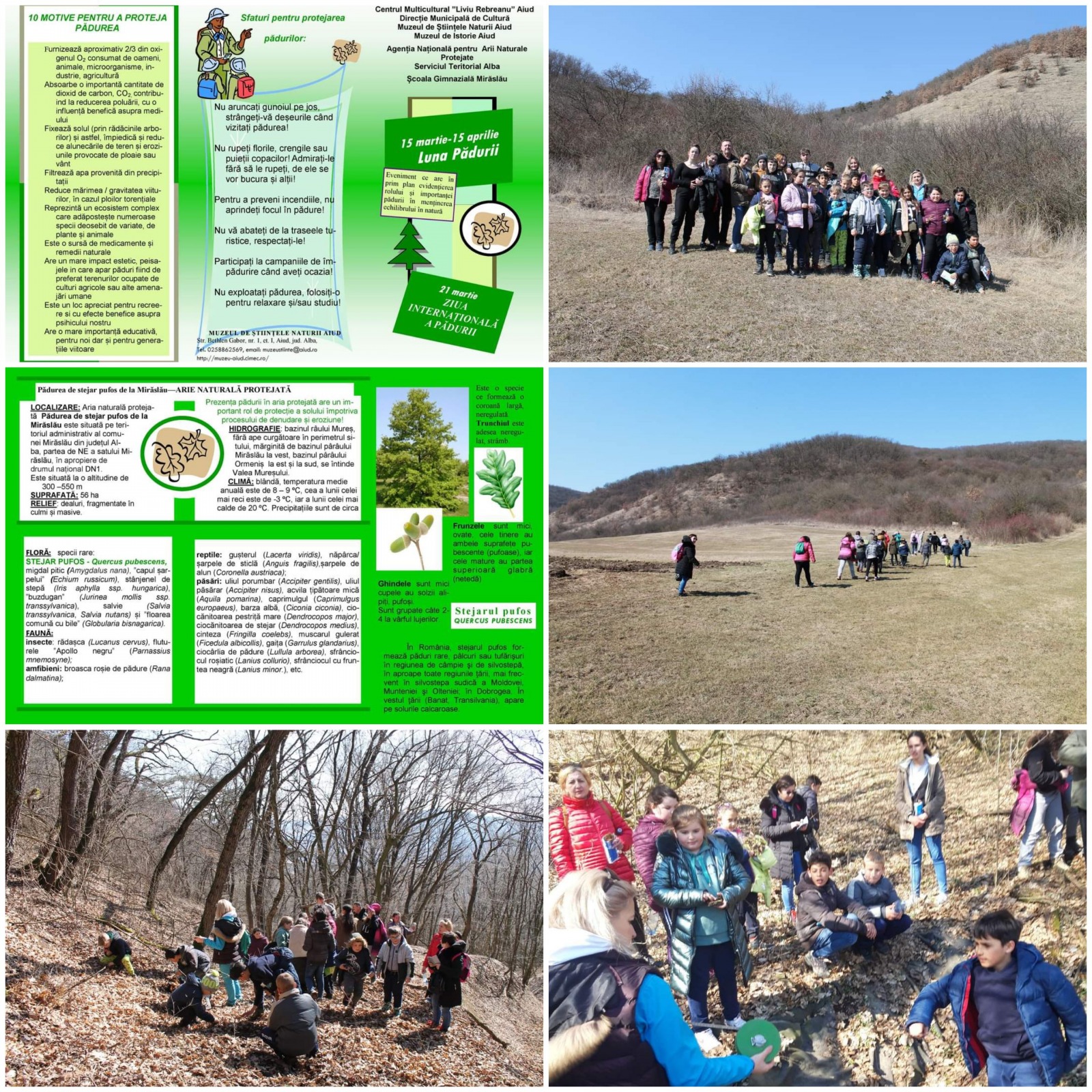 „Luna pădurii” și „Ziua Internațională a Pădurilor” au fost marcate de Centrul Multicultural „Liviu Rebreanu” Aiud – compartimentul Muzeul de Științele Naturii și Muzeul de Istorie printr-o vizită organizată în aria protejată Pădurea de stejar pufos de la Mirăslău.