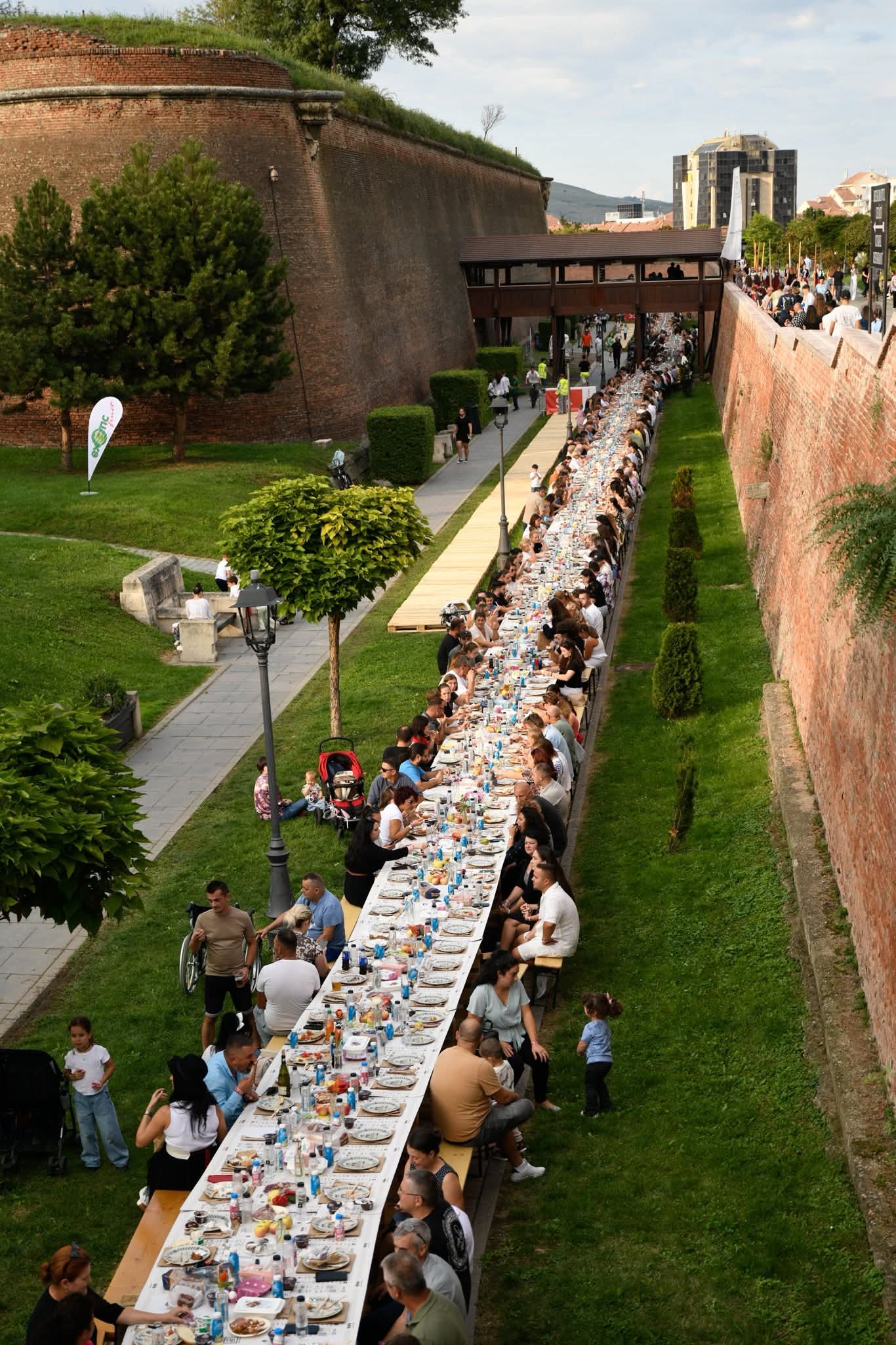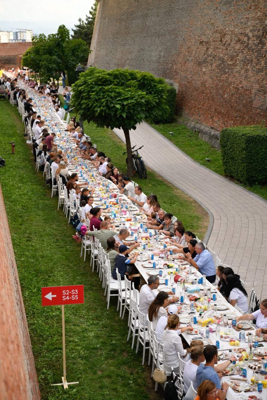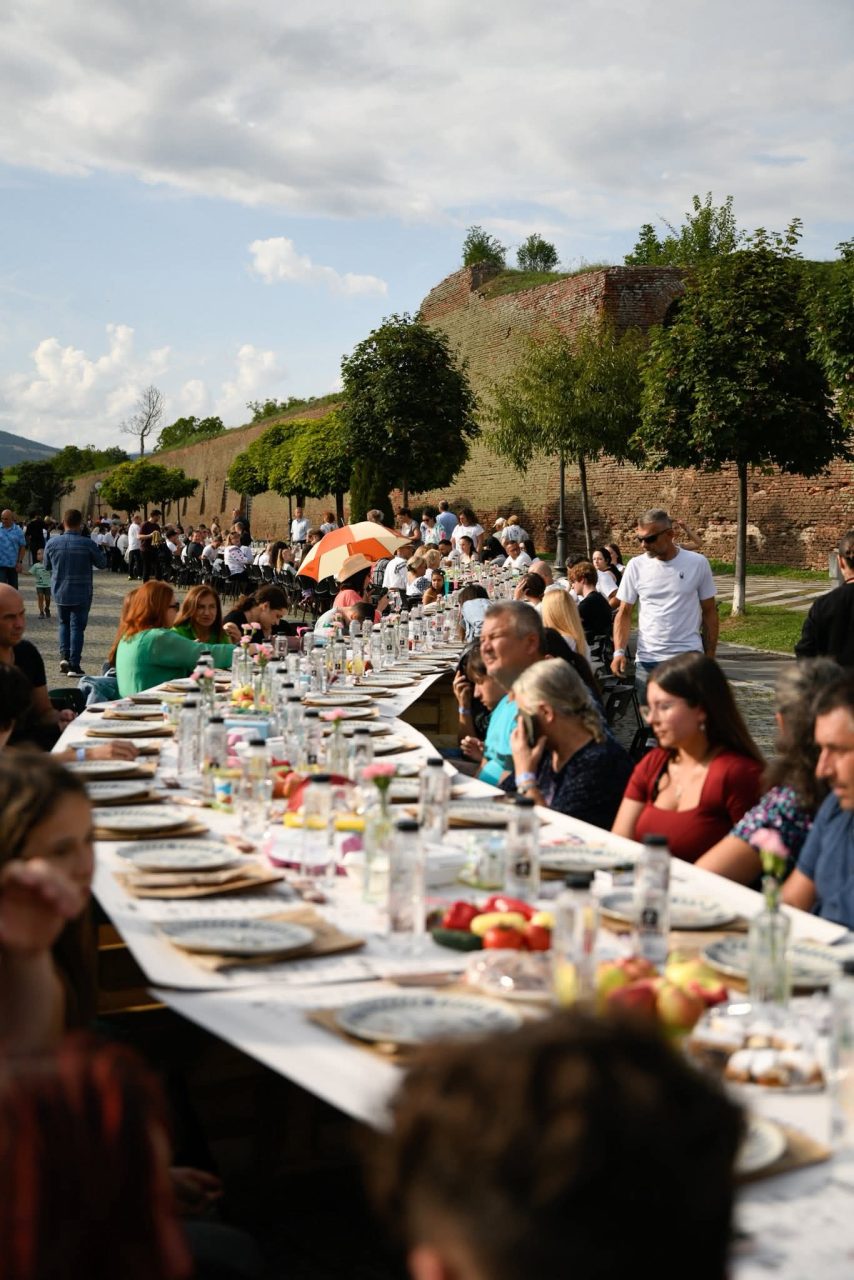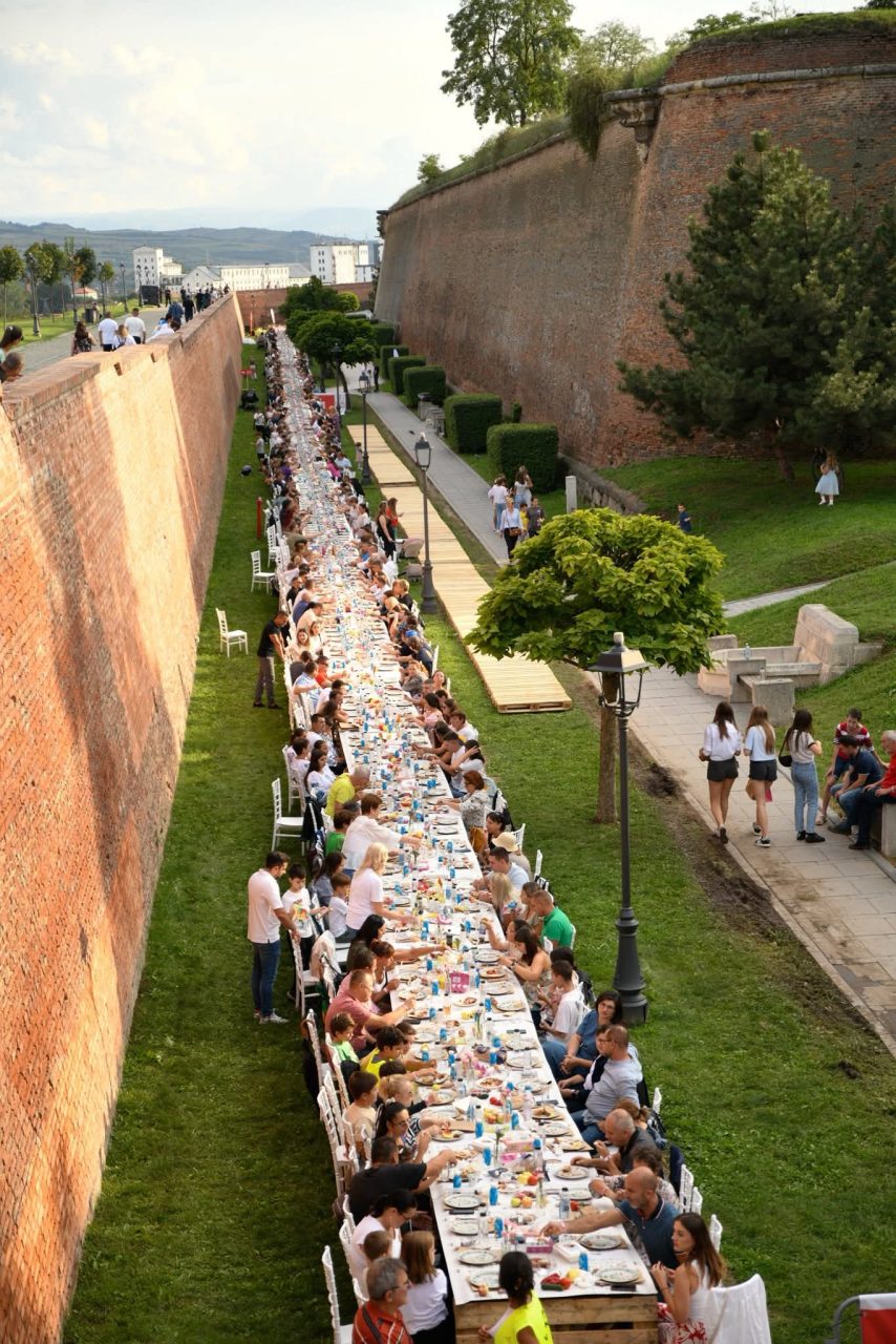 Alba Iulia a reușit încă o dată să aducă oamenii împreună – la propriu! Orașul a găzduit cea mai lungă masă realizată din materiale reciclabile, de 2,78 km, pe toată lungimea Șanțurilor Cetății Alba Carolina, la care s-au așezat și au sărbătorit împreună 10.000 de oameni.