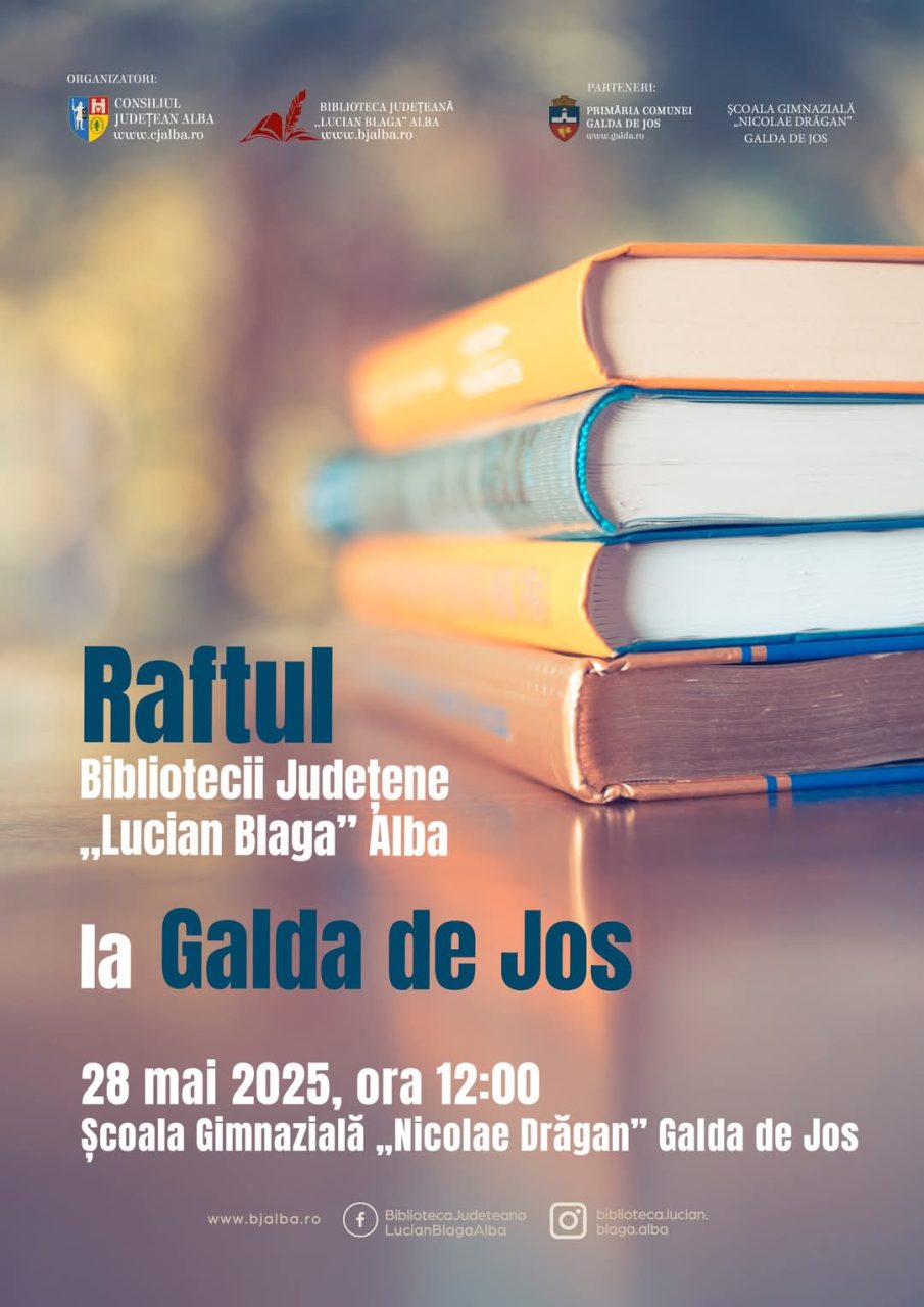 Miercuri, 28 mai 2025, Consiliul Județean Alba și Biblioteca Județeană „Lucian Blaga” Alba organizează o nouă activitate în cadrul proiectului 2.9 Raftul Bibliotecii Județene „Lucian Blaga” Alba.