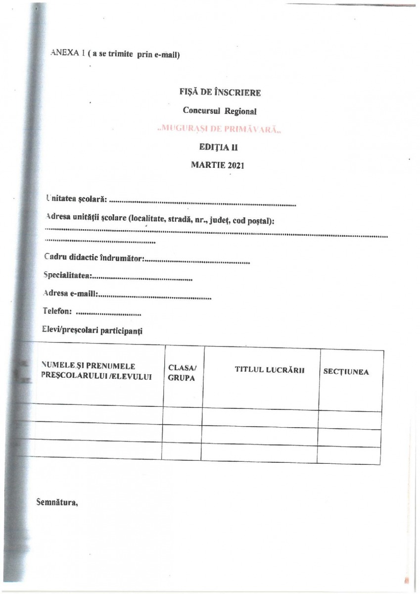 „MUGURAȘI DE PRIMAVARĂ” – CONCURS REGIONAL DE CREAȚIE ARTISICĂ ȘI LITERARĂ