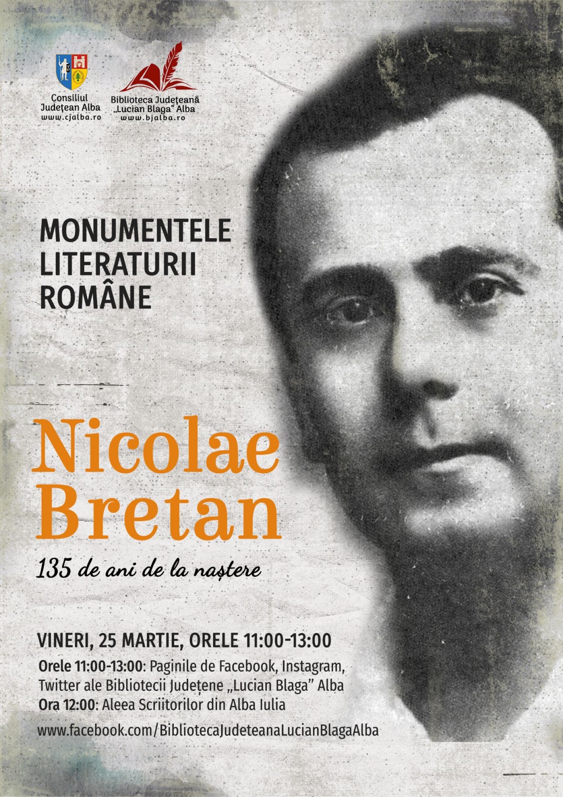Astăzi, Consiliul Județean Alba și Biblioteca Județeană „Lucian Blaga” Alba îl omagiază pe compozitorul, baritonul și regizorul de operă român Nicolae Bretan, autor al primei opere românești din Transilvania, de la a cărui naștere se împlinesc 135 de ani.