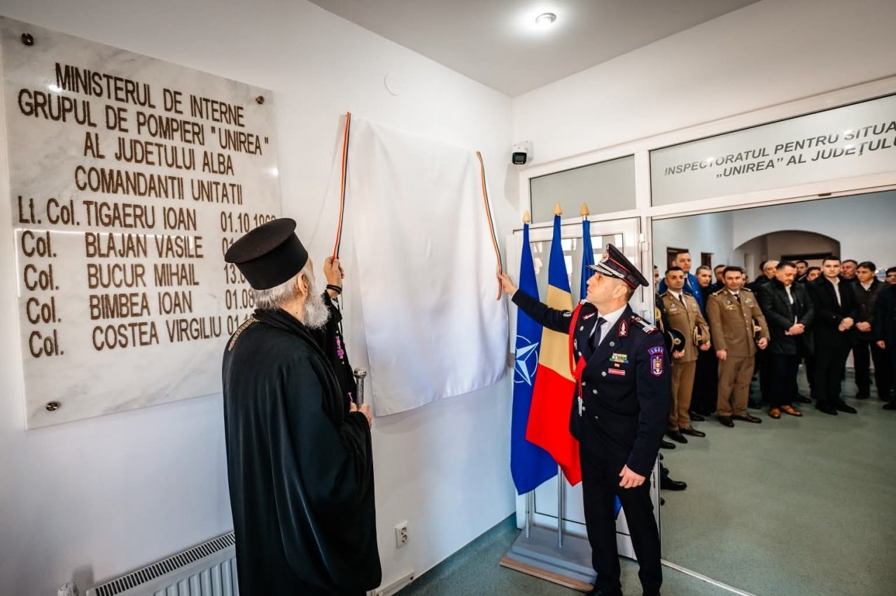 O placă onoare cu numele inspectorilor șefi, a fost dezvelită la ISU Alba. Colonelul Ovidiu Costea, decorat cu Ordinul „Credință și Unire”, de Înalt Preasfințitul Părinte Arhiepiscop Irineu al Alba Iuliei
