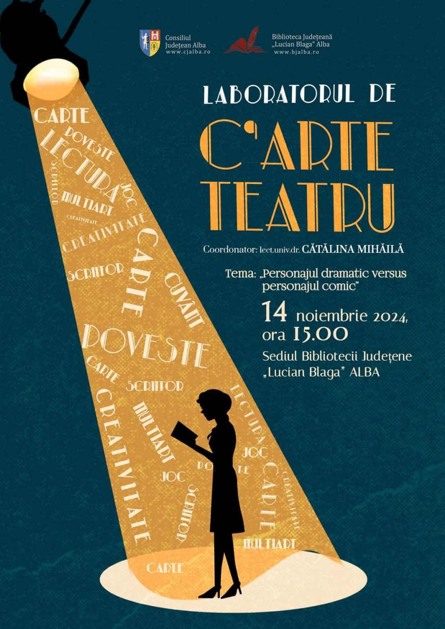 „Personajul dramatic versus personajul comic”, tema lunii noiembrie a Laboratorului de C’Arte Teatru, al Bibliotecii Județene „Lucian Blaga” Alba Iulia