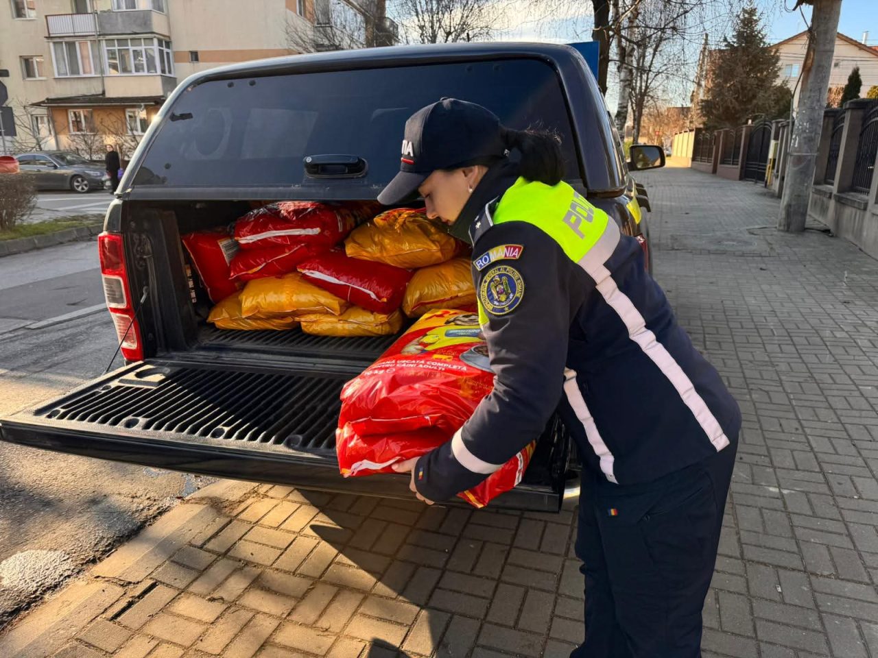 Polițiștii au donat peste 300 kilograme de mâncare, persoanelor care au de grijă zilnic de animale.